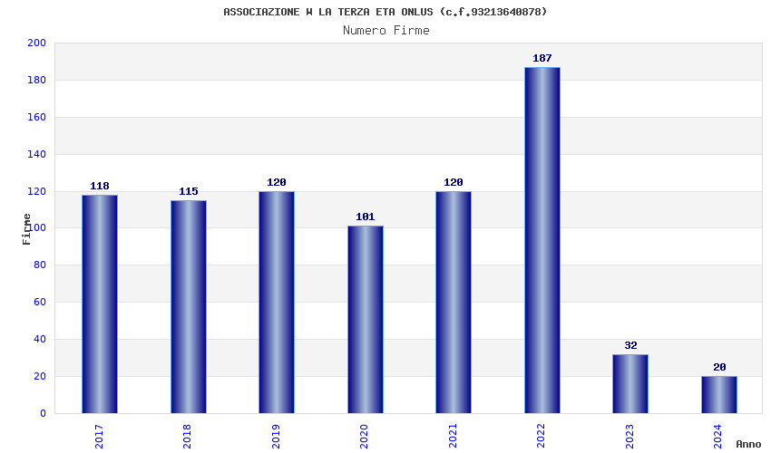| Anno | Firme | Importi | Media | Naz. | Reg. | Prov. | Comu. |