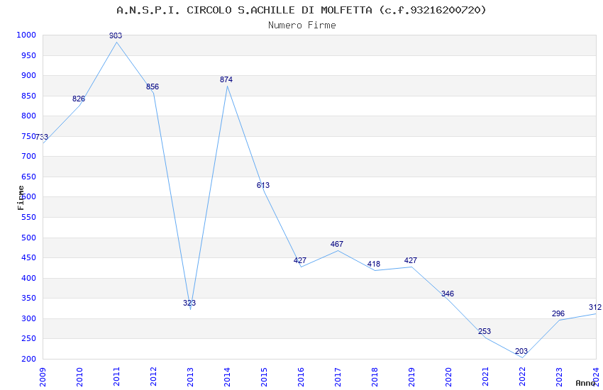 | Anno | Firme | Importi | Media | Naz. | Reg. | Prov. | Comu. |