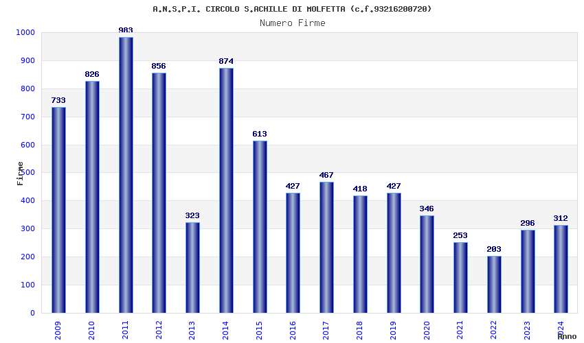 | 2009 | 733 | 18.574,01 | 25,34 | 2.155 | 97 | 40 | 1 |