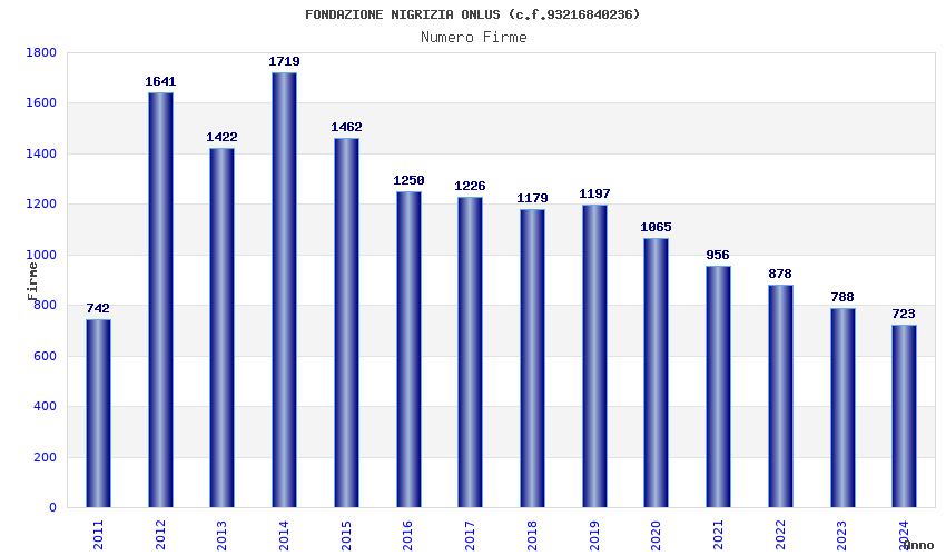 | Anno | Firme | Importi | Media | Naz. | Reg. | Prov. | Comu. |