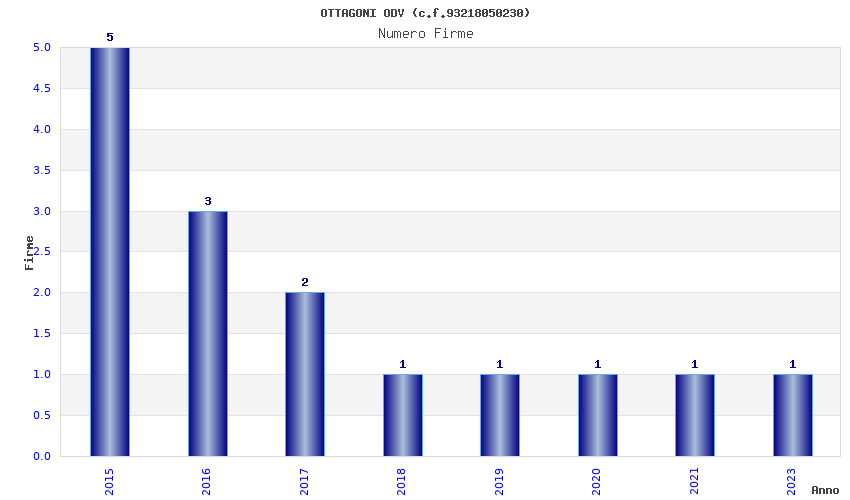 | Anno | Firme | Importi | Media | Naz. | Reg. | Prov. | Comu. |