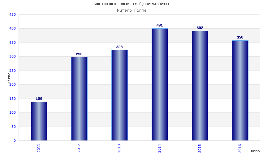 | Anno | Firme | Importi | Media | Naz. | Reg. | Prov. | Comu. |