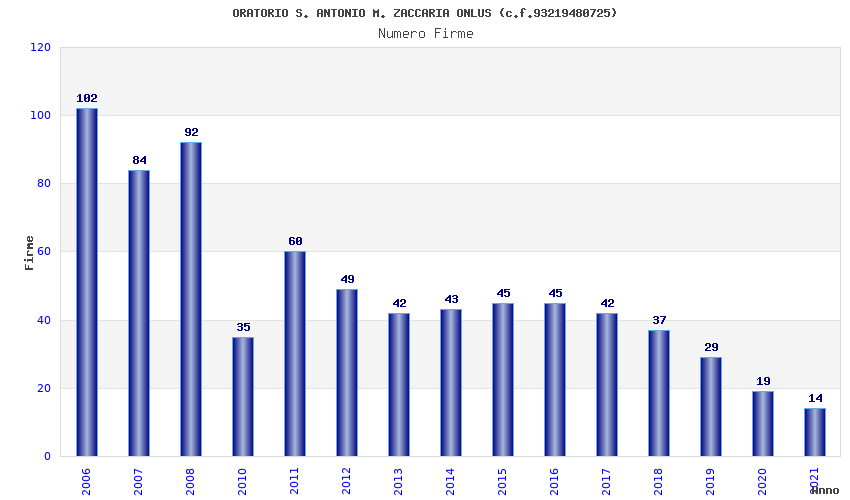 | Anno | Firme | Importi | Media | Naz. | Reg. | Prov. | Comu. |