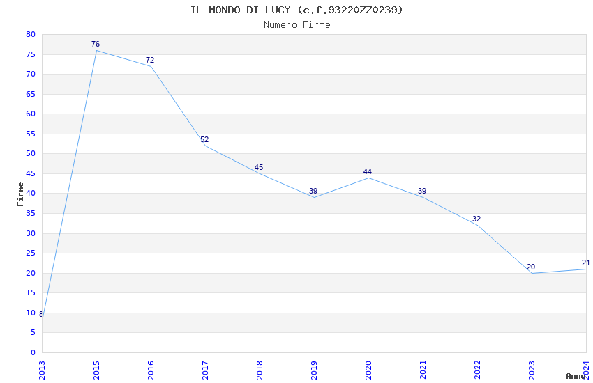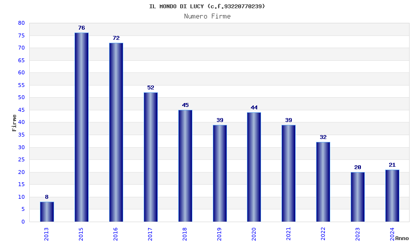 | Anno | Firme | Importi | Media | Naz. | Reg. | Prov. | Comu. |
