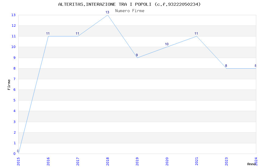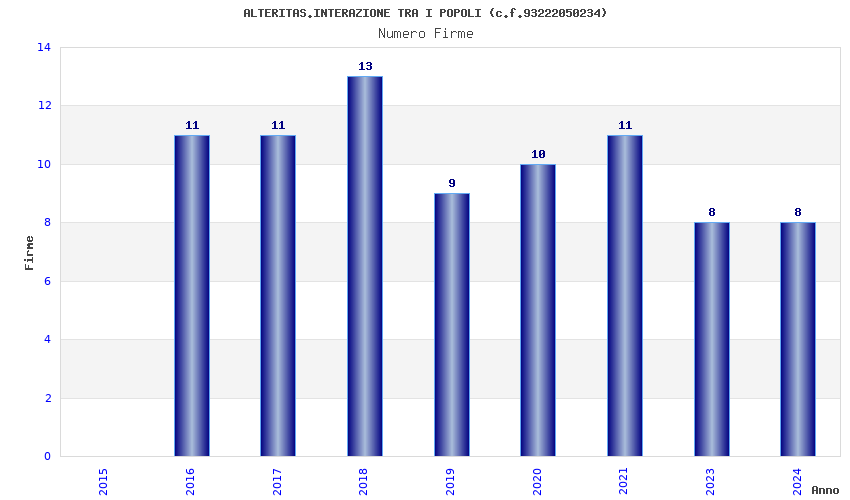 | Anno | Firme | Importi | Media | Naz. | Reg. | Prov. | Comu. |