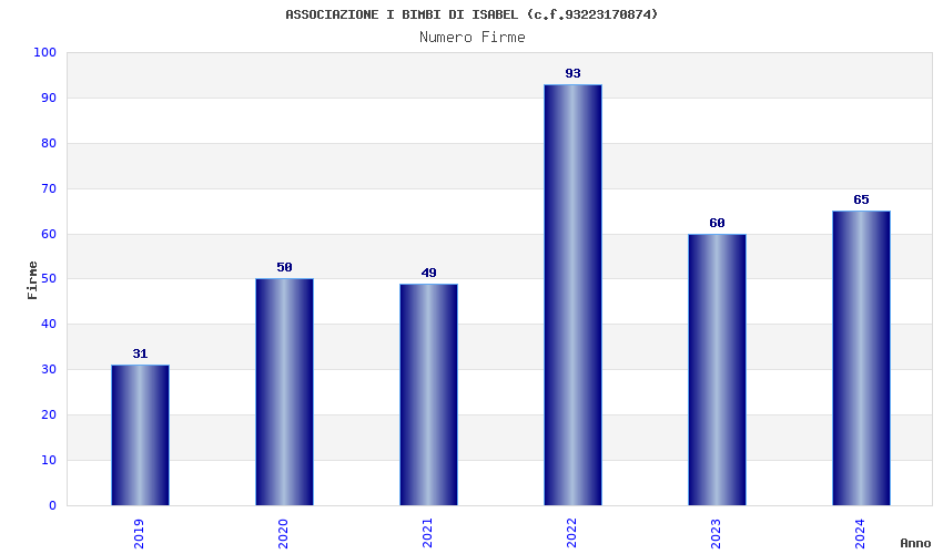 | Anno | Firme | Importi | Media | Naz. | Reg. | Prov. | Comu. |