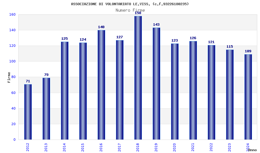 | Anno | Firme | Importi | Media | Naz. | Reg. | Prov. | Comu. |