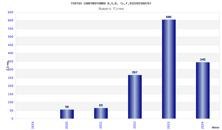 | Anno | Firme | Importi | Media | Naz. | Reg. | Prov. | Comu. |