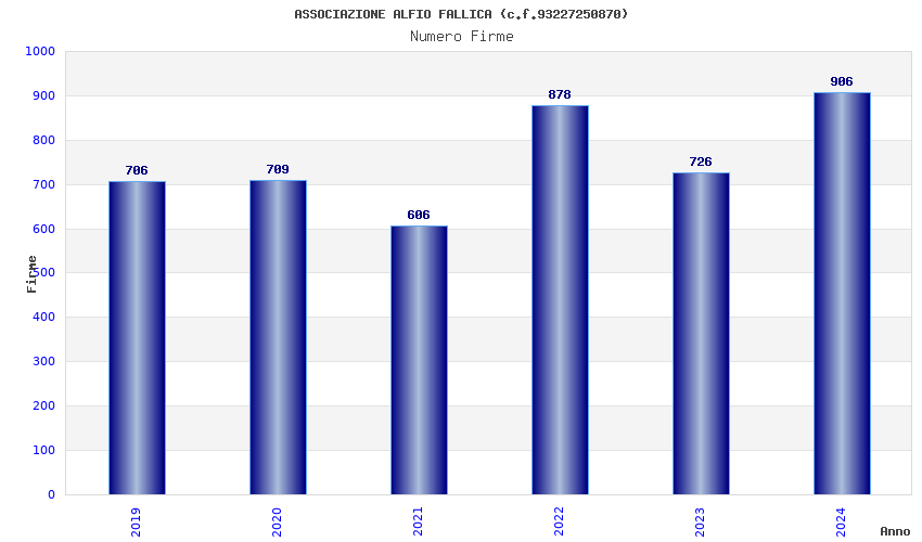 | Anno | Firme | Importi | Media | Naz. | Reg. | Prov. | Comu. |