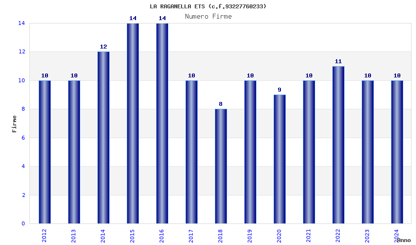 | Anno | Firme | Importi | Media | Naz. | Reg. | Prov. | Comu. |