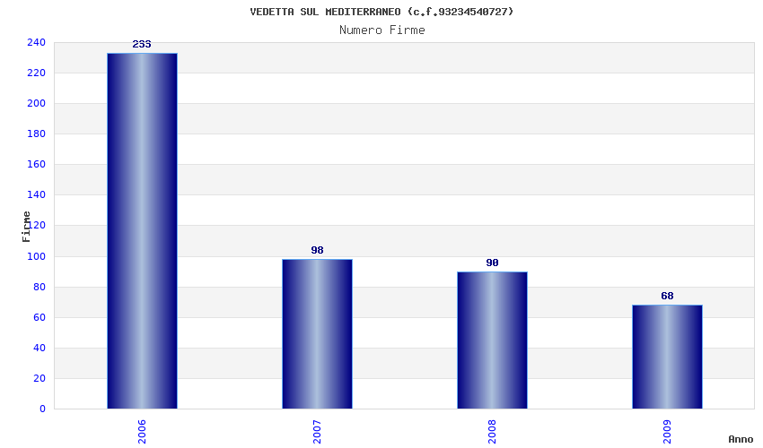 | Anno | Firme | Importi | Media | Naz. | Reg. | Prov. | Comu. |