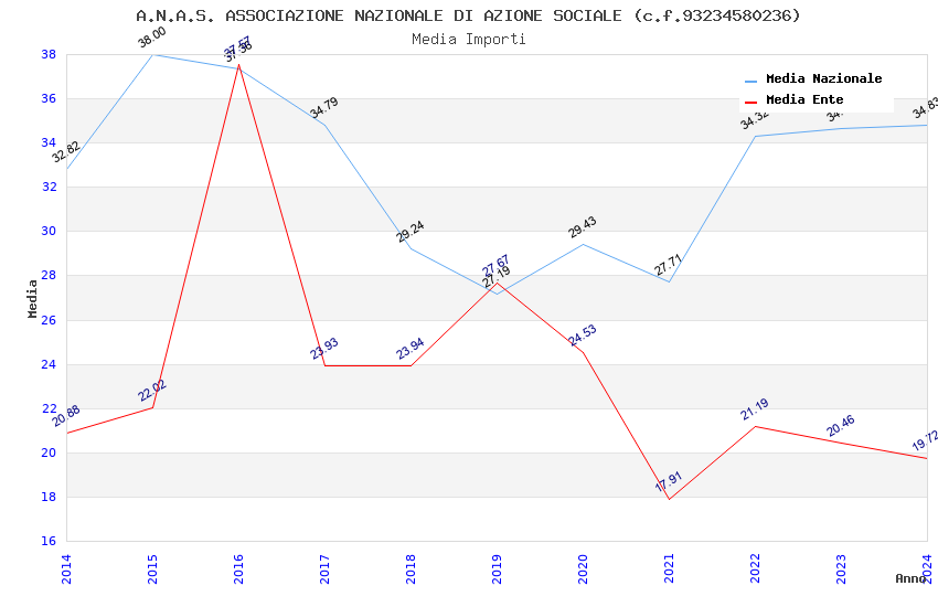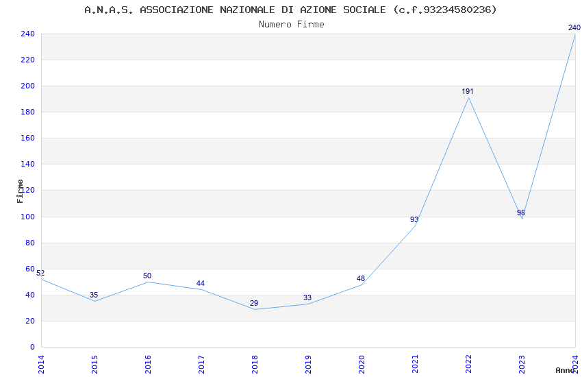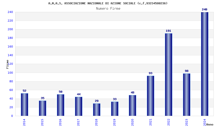 | Anno | Firme | Importi | Media | Naz. | Reg. | Prov. | Comu. |