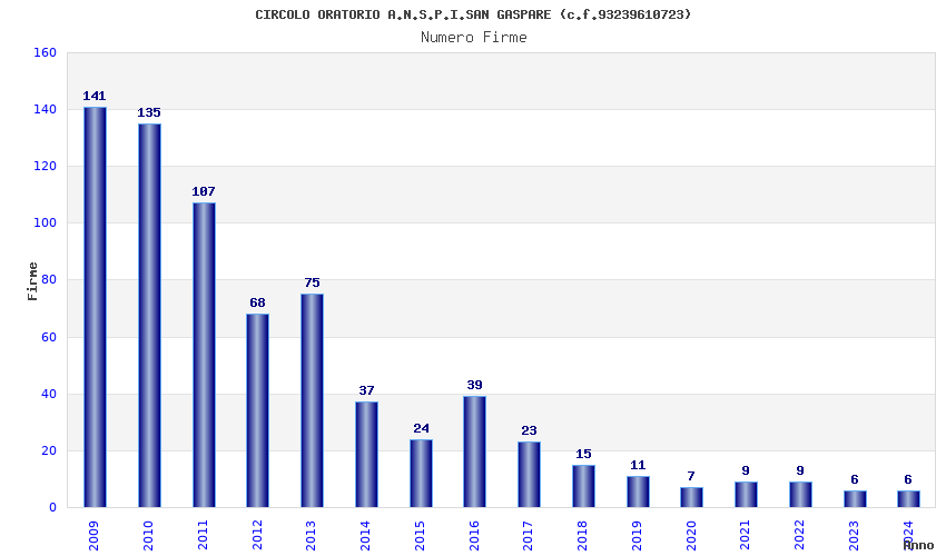 | Anno | Firme | Importi | Media | Naz. | Reg. | Prov. | Comu. |
