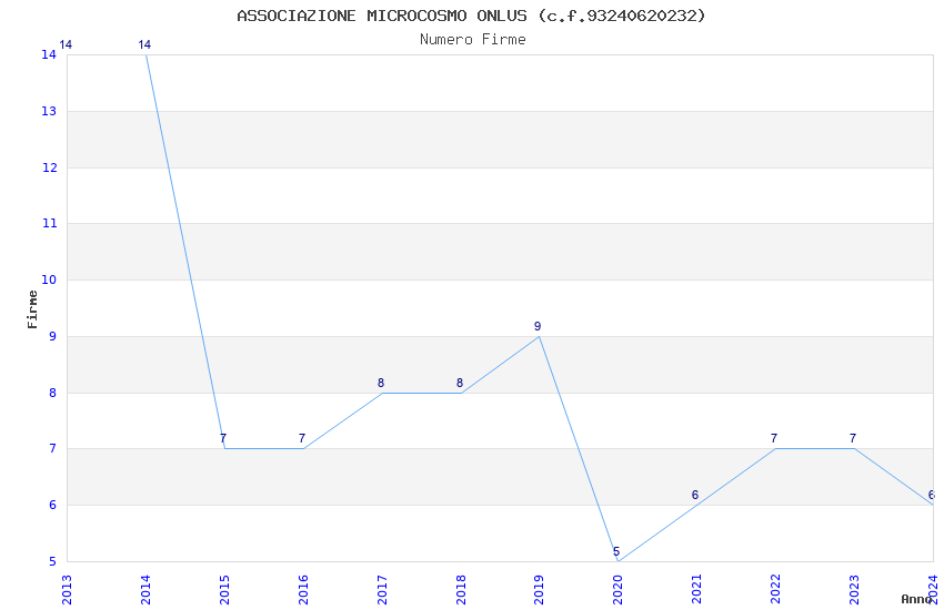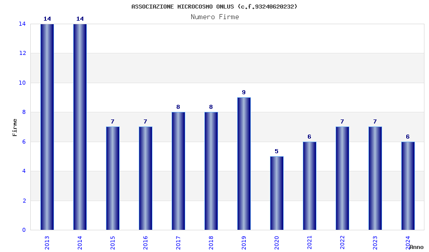 | Anno | Firme | Importi | Media | Naz. | Reg. | Prov. | Comu. |