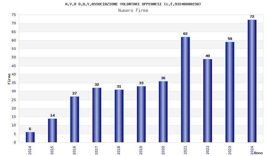 | Anno | Firme | Importi | Media | Naz. | Reg. | Prov. | Comu. |