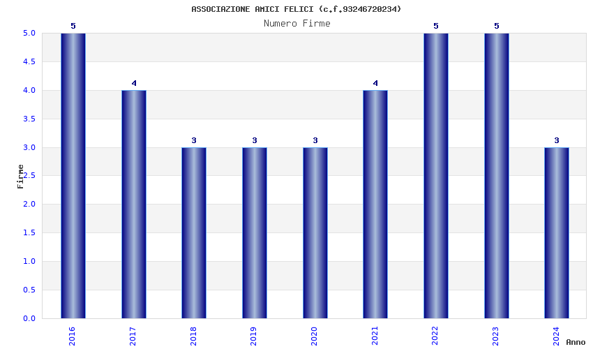 | Anno | Firme | Importi | Media | Naz. | Reg. | Prov. | Comu. |