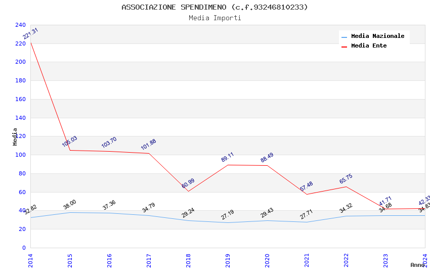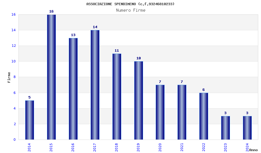 | Anno | Firme | Importi | Media | Naz. | Reg. | Prov. | Comu. |