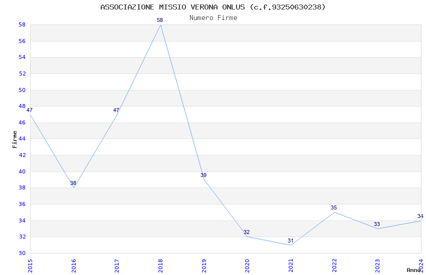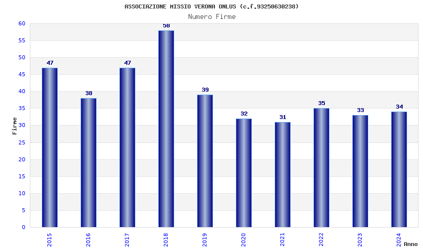 | Anno | Firme | Importi | Media | Naz. | Reg. | Prov. | Comu. |