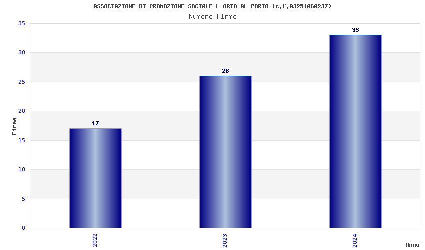 | Anno | Firme | Importi | Media | Naz. | Reg. | Prov. | Comu. |