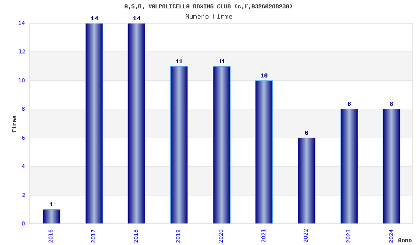 | Anno | Firme | Importi | Media | Naz. | Reg. | Prov. | Comu. |