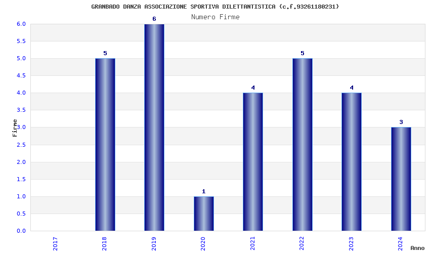 | Anno | Firme | Importi | Media | Naz. | Reg. | Prov. | Comu. |
