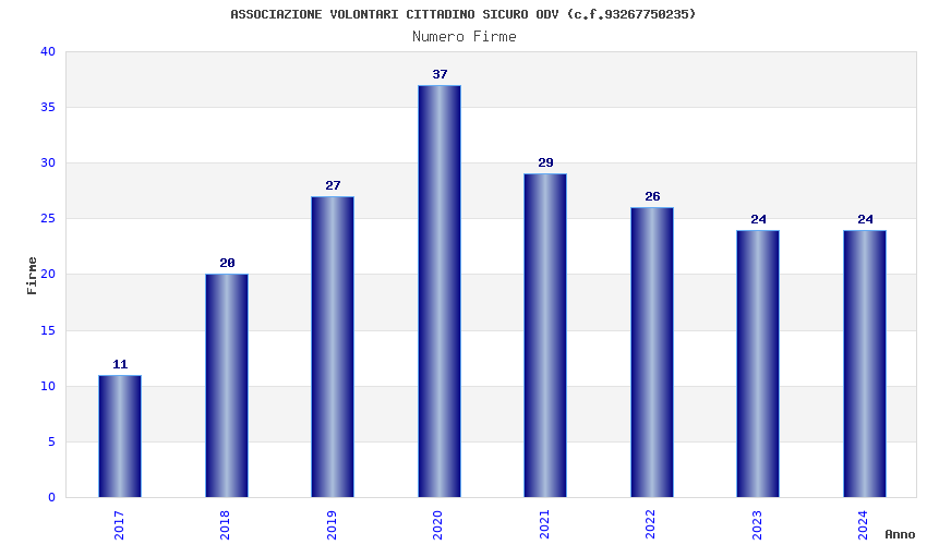 | Anno | Firme | Importi | Media | Naz. | Reg. | Prov. | Comu. |