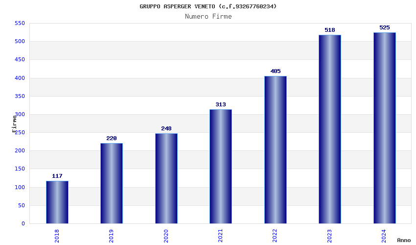 | Anno | Firme | Importi | Media | Naz. | Reg. | Prov. | Comu. |