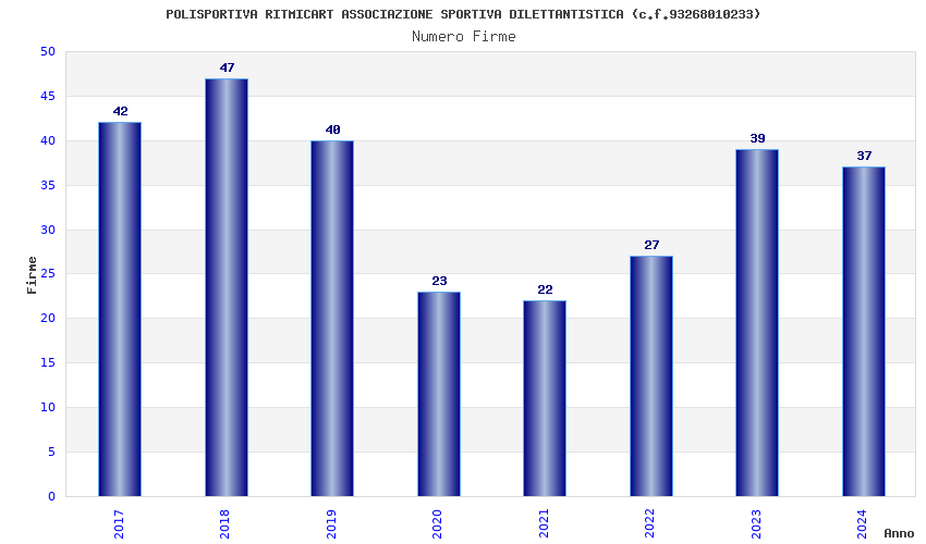 | Anno | Firme | Importi | Media | Naz. | Reg. | Prov. | Comu. |