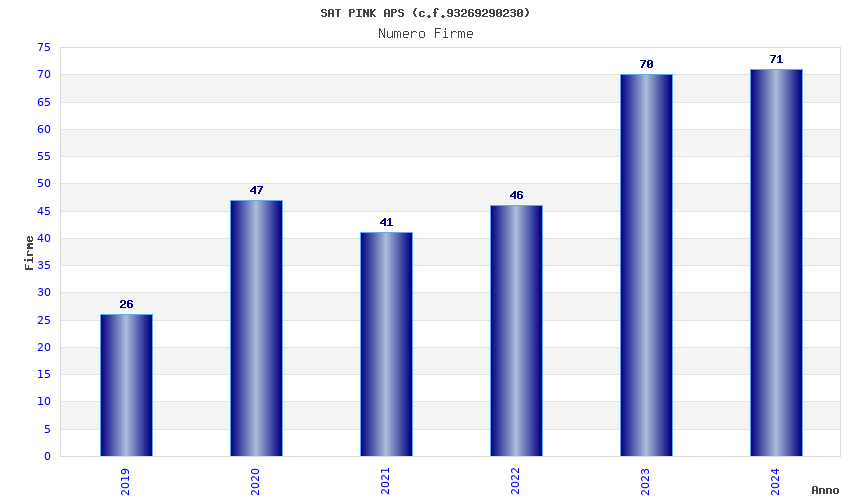 | Anno | Firme | Importi | Media | Naz. | Reg. | Prov. | Comu. |