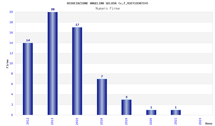 | Anno | Firme | Importi | Media | Naz. | Reg. | Prov. | Comu. |