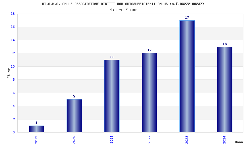 | Anno | Firme | Importi | Media | Naz. | Reg. | Prov. | Comu. |