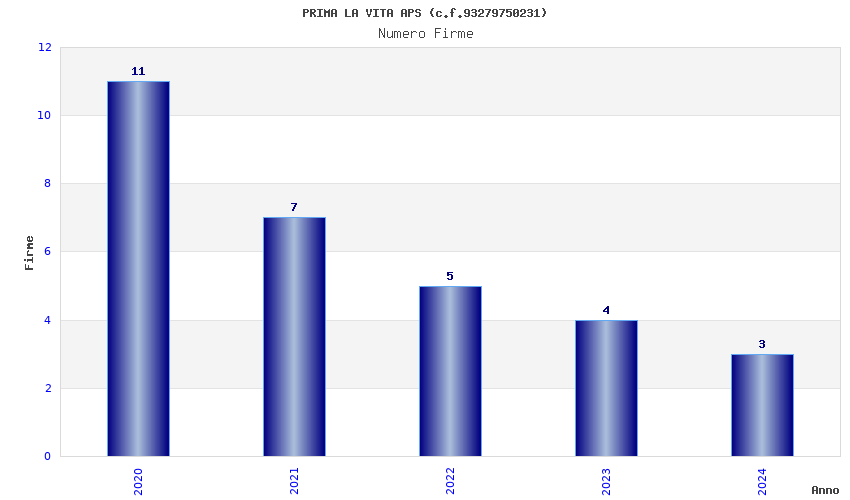 | Anno | Firme | Importi | Media | Naz. | Reg. | Prov. | Comu. |