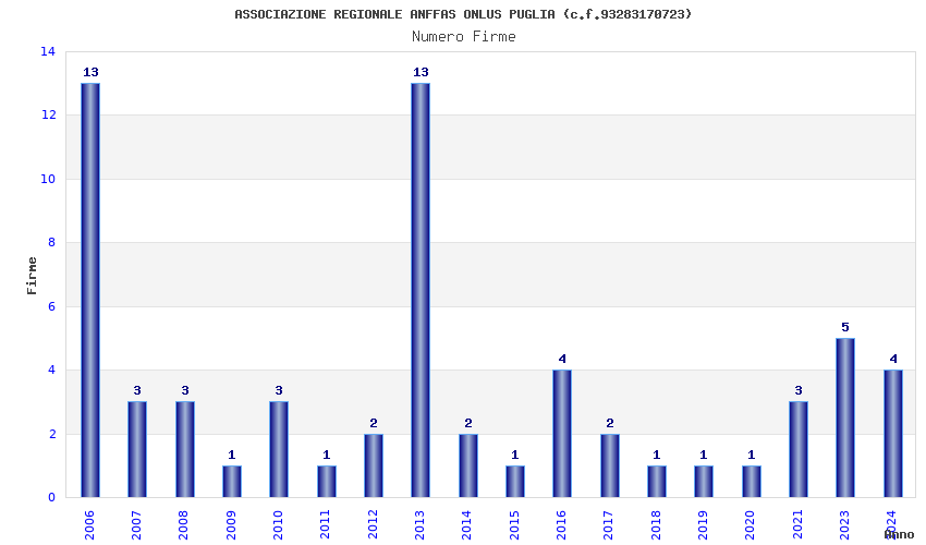 | Anno | Firme | Importi | Media | Naz. | Reg. | Prov. | Comu. |
