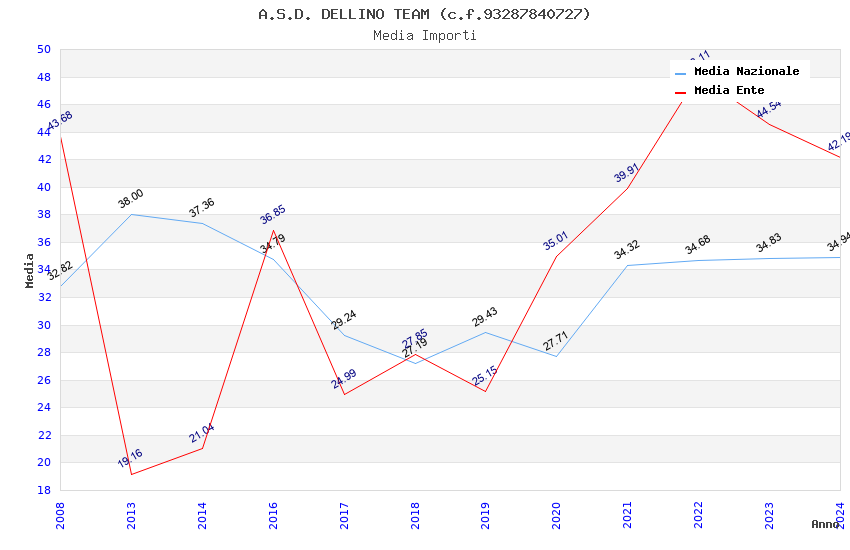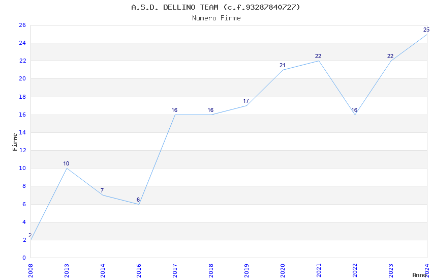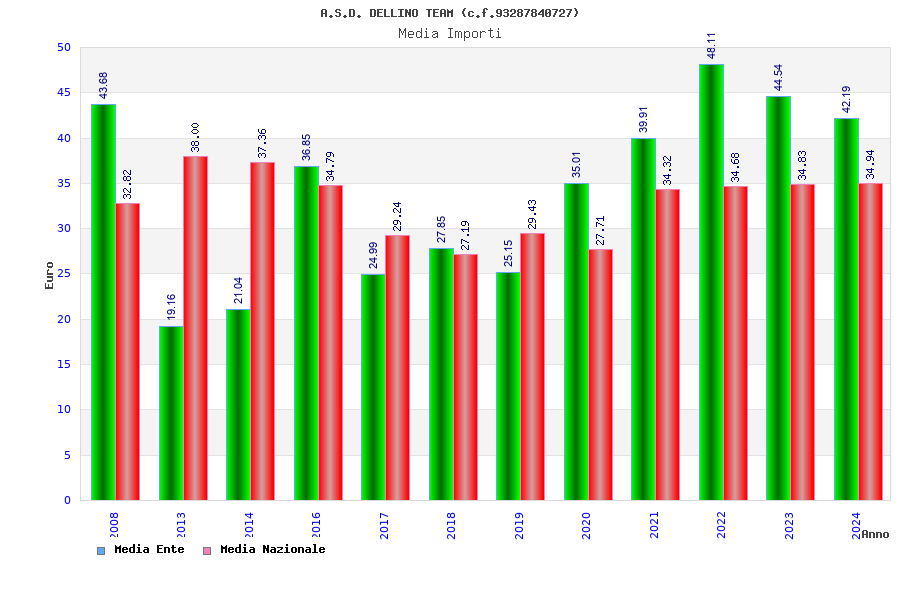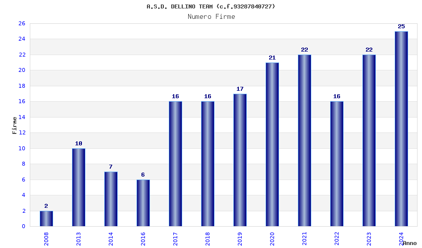 | Anno | Firme | Importi | Media | Naz. | Reg. | Prov. | Comu. |