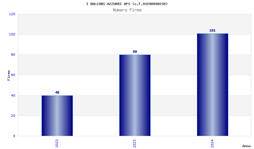| Anno | Firme | Importi | Media | Naz. | Reg. | Prov. | Comu. |