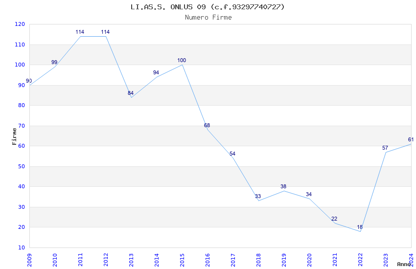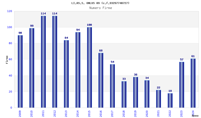 | Anno | Firme | Importi | Media | Naz. | Reg. | Prov. | Comu. |