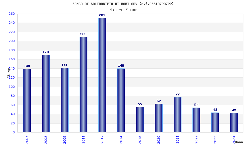 | Anno | Firme | Importi | Media | Naz. | Reg. | Prov. | Comu. |