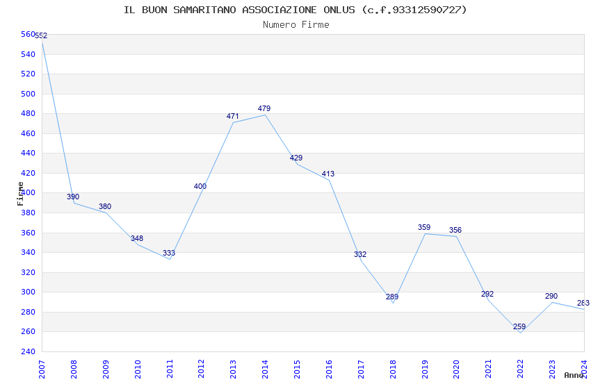 | Anno | Firme | Importi | Media | Naz. | Reg. | Prov. | Comu. |