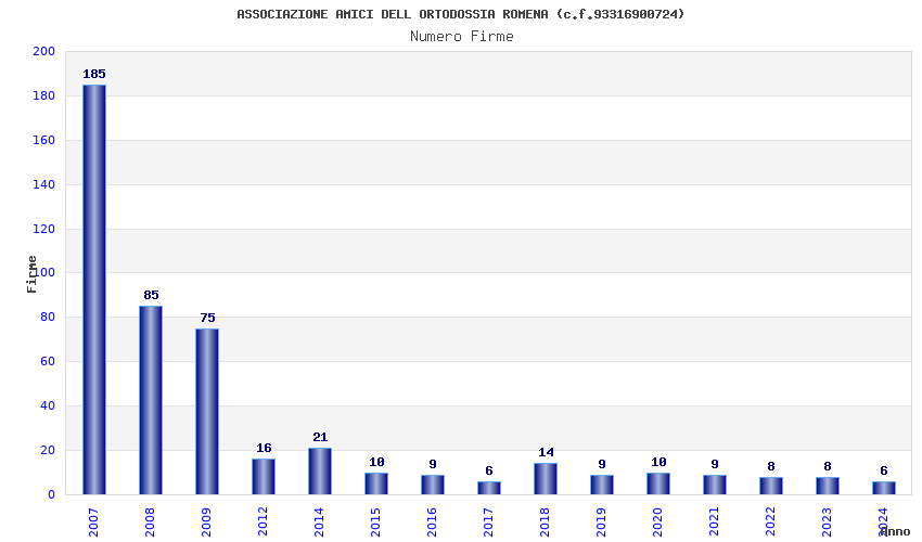 | Anno | Firme | Importi | Media | Naz. | Reg. | Prov. | Comu. |
