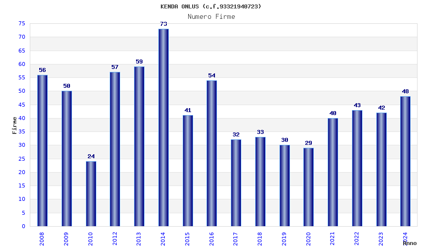 | Anno | Firme | Importi | Media | Naz. | Reg. | Prov. | Comu. |