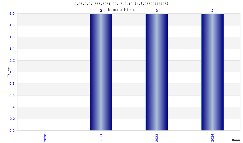 | Anno | Firme | Importi | Media | Naz. | Reg. | Prov. | Comu. |