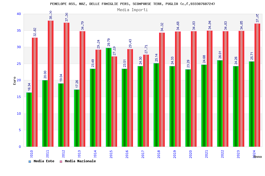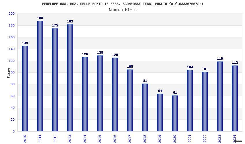 | Anno | Firme | Importi | Media | Naz. | Reg. | Prov. | Comu. |