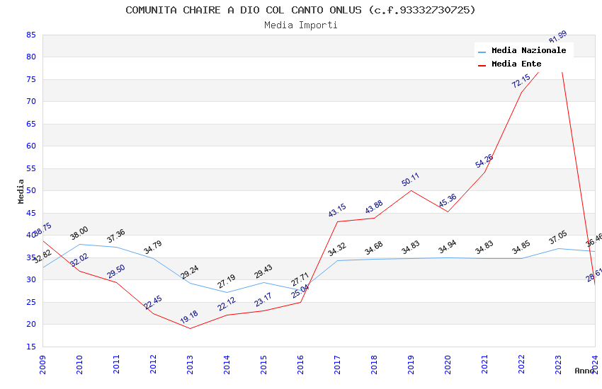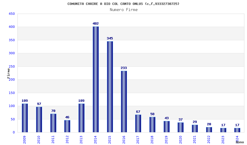 | Anno | Firme | Importi | Media | Naz. | Reg. | Prov. | Comu. |