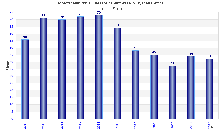| Anno | Firme | Importi | Media | Naz. | Reg. | Prov. | Comu. |