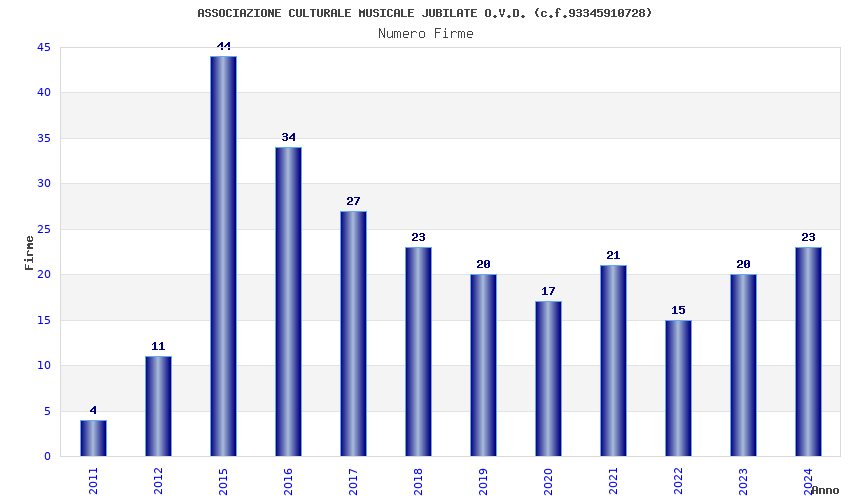 | Anno | Firme | Importi | Media | Naz. | Reg. | Prov. | Comu. |