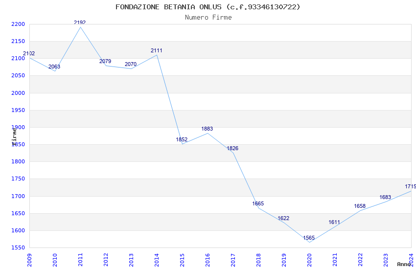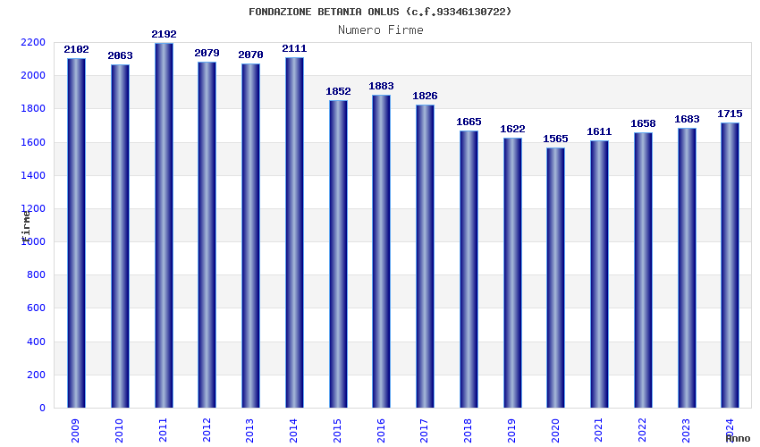 | Anno | Firme | Importi | Media | Naz. | Reg. | Prov. | Comu. |