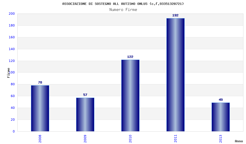 | Anno | Firme | Importi | Media | Naz. | Reg. | Prov. | Comu. |