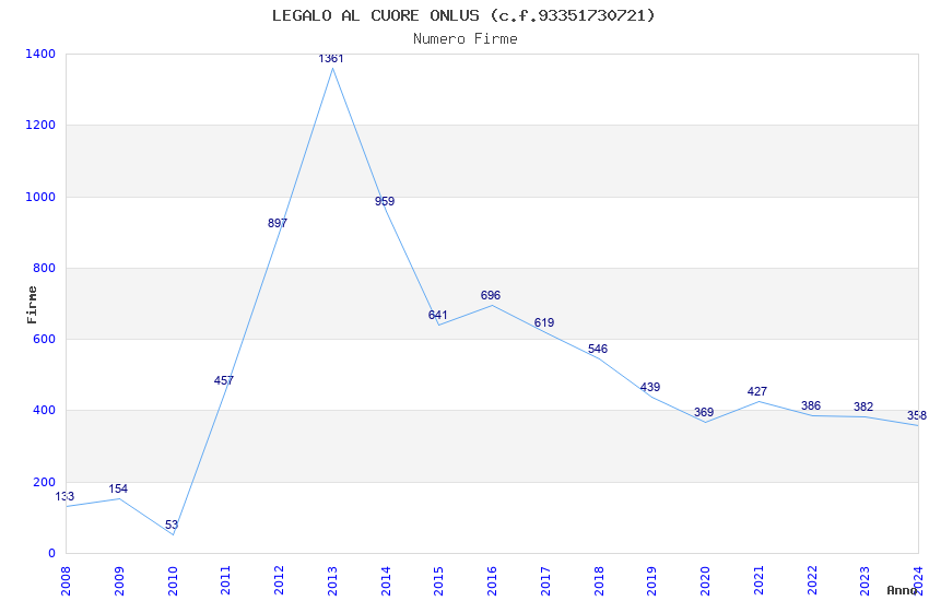 Anno Firme Importi Media Naz. Reg. Prov. Comu.