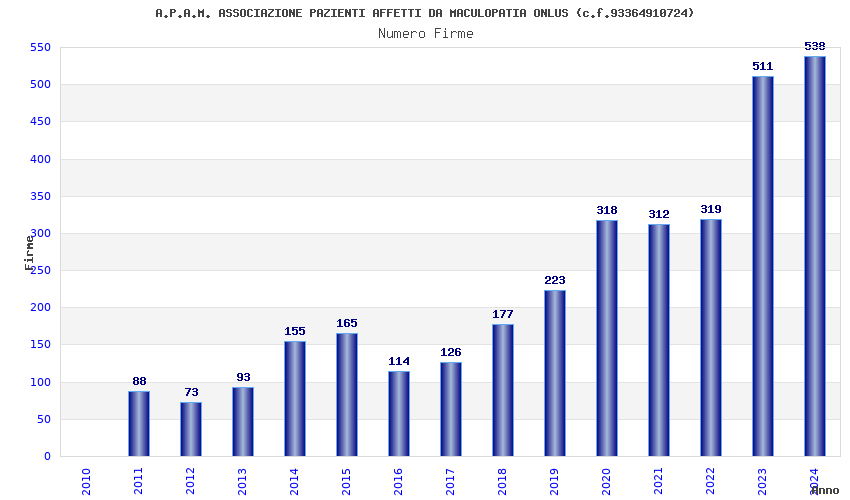 | Anno | Firme | Importi | Media | Naz. | Reg. | Prov. | Comu. |