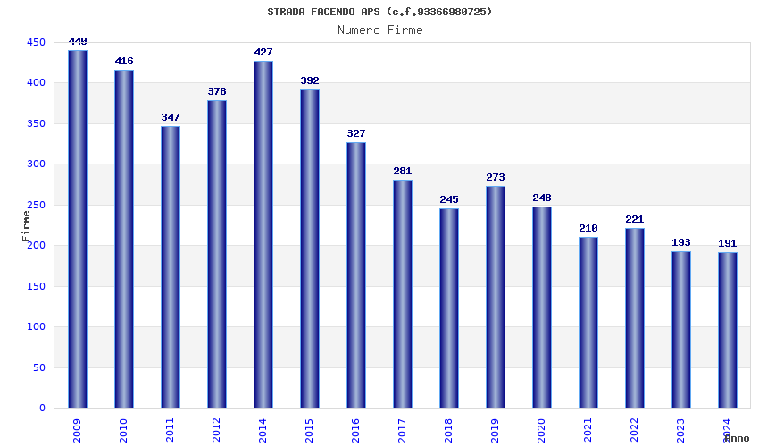 | Anno | Firme | Importi | Media | Naz. | Reg. | Prov. | Comu. |
